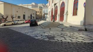Εργασίες ομαλοποίησης του πλακόστρωτου πλησίον του Καθολικού Ι.Ν. Ευαγγελίστριας στην Ερμούπολη για την τοποθέτηση ράμπας ΑΜΕΑ