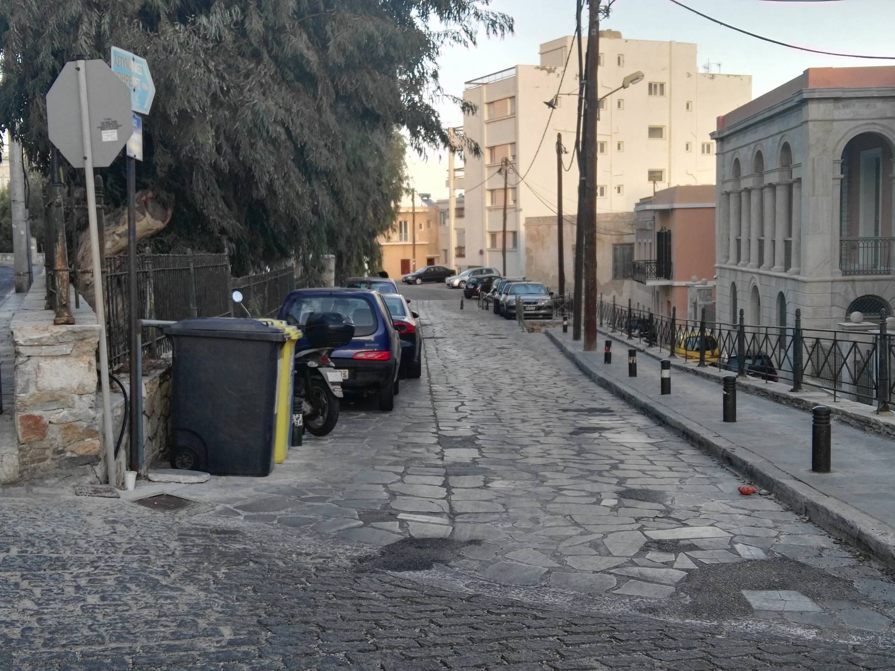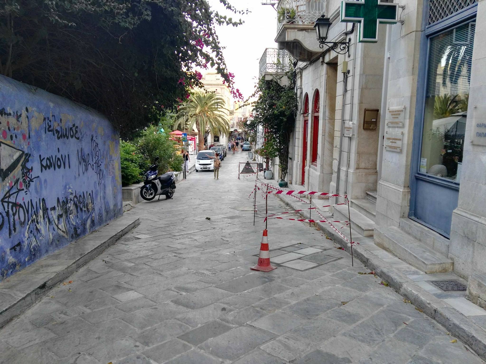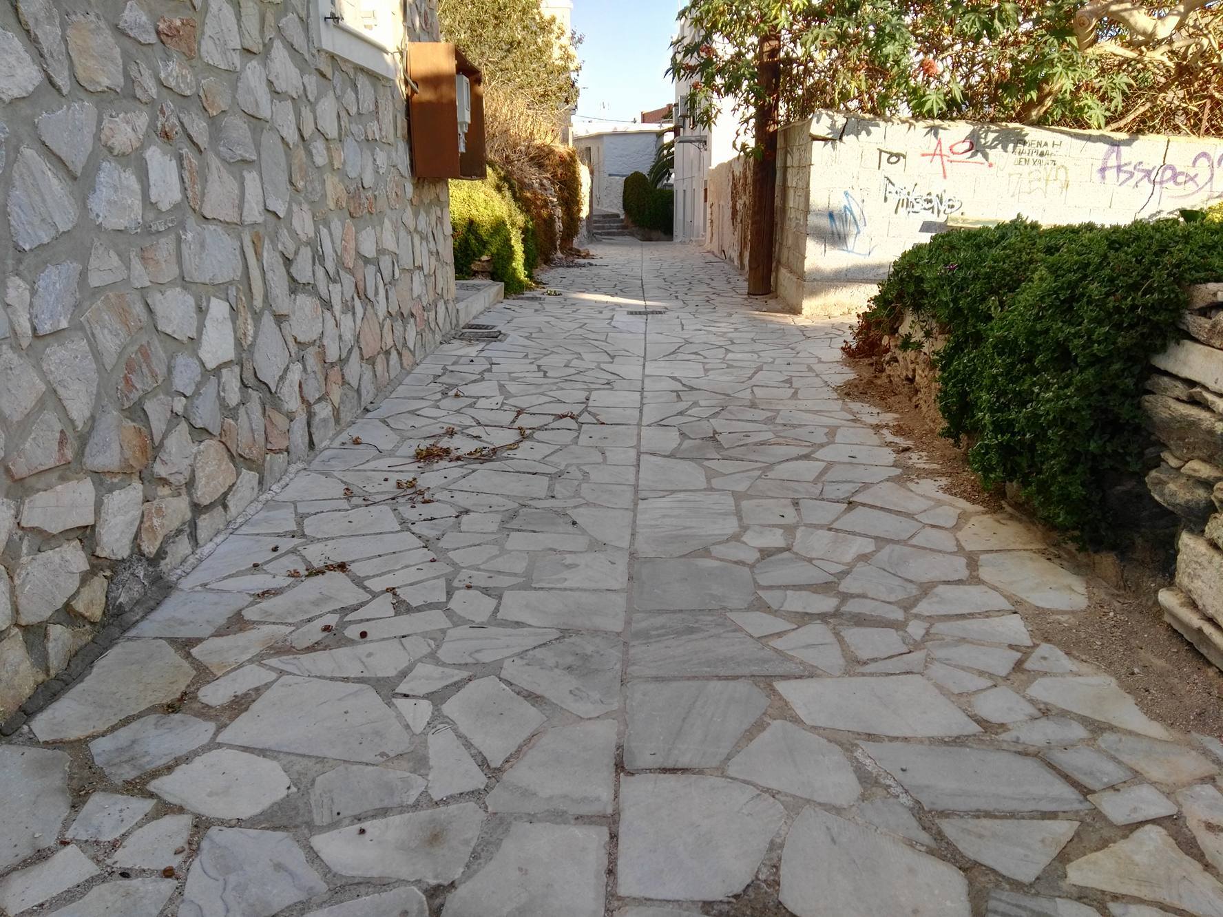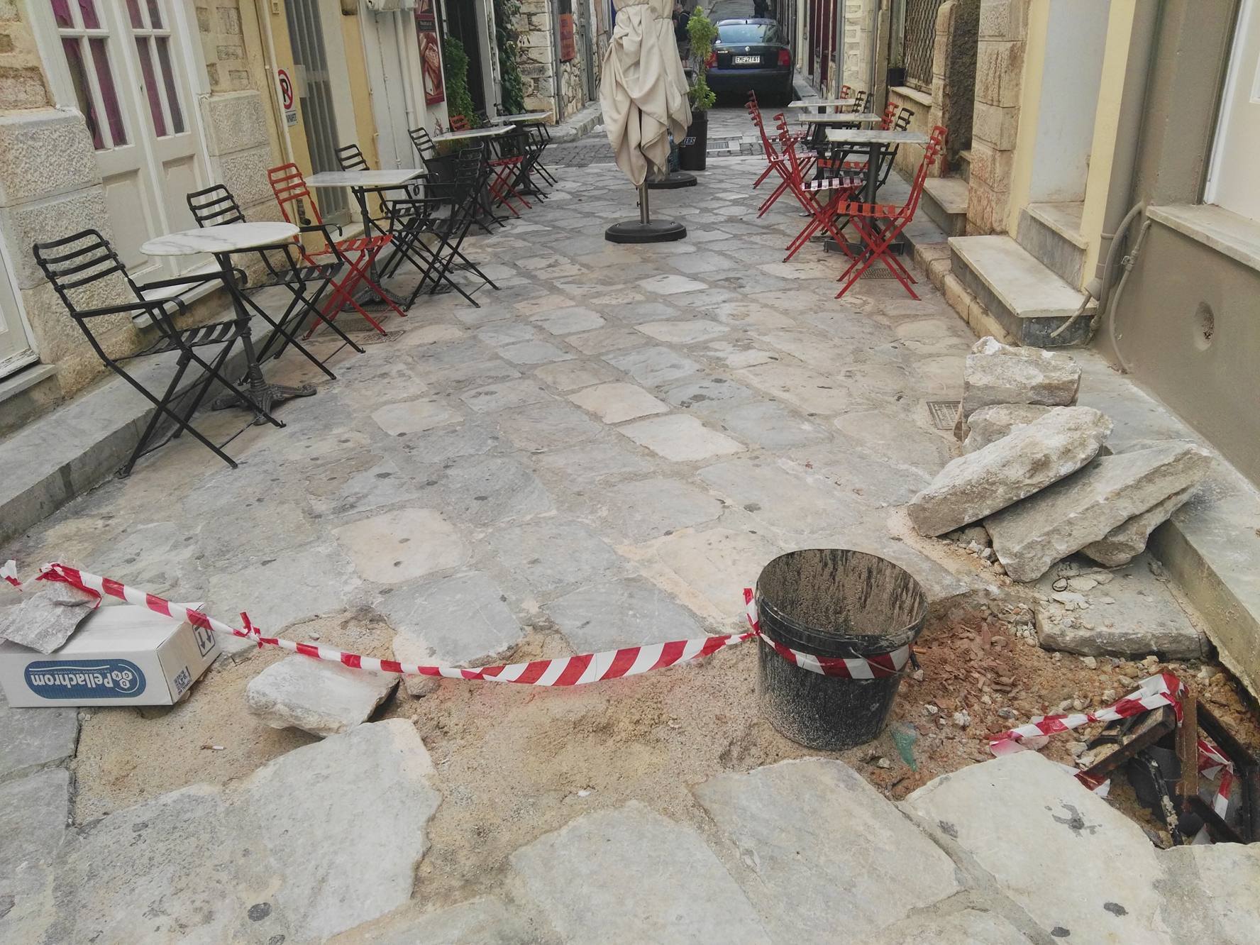 Αποκατάσταση που προκάλεσε αντιαισθητικό αποτέλεσμα στο παραδοσιακό πλακόστρωτο της οδού Κάσου, τον δρόμο που εξυπηρετεί την Αστυνομική Διεύθυνση Κυκλ...