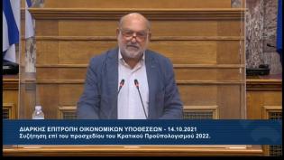 Ομιλία του βουλευτή στην Επιτροπή Οικονομικών της Βουλής, κατά τη συζήτηση για το προσχέδιο Προϋπολογισμού