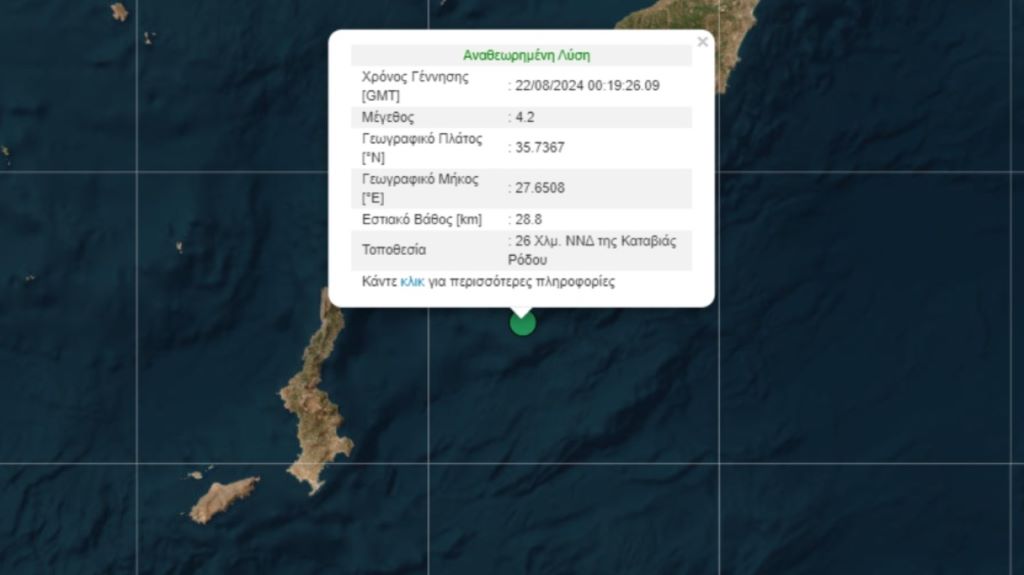 Σεισμική δόνηση μεγέθους 4,2 βαθμών της κλίμακας Ρίχτερ σημειώθηκε τα ξημερώματα της Πέμπτης ανοιχτά της Ρόδου. Το επίκεντρο της δόνησης εντοπίστηκ...