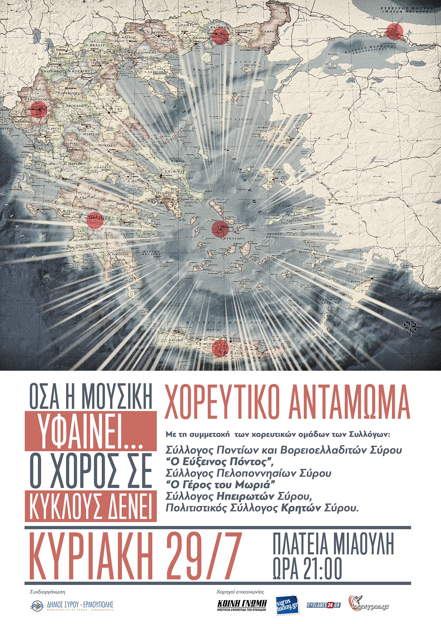 Την Κυριακή 29 Ιουλίου 2018 και ώρα 21:00, στην Πλατεία Μιαούλη, θα πραγματοποιηθεί το χορευτικό αντάμωμα «Όσα η μουσική υφαίνει… ο χορός σε κύκλους δ...