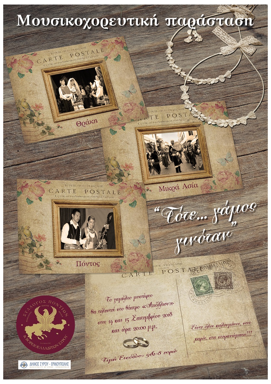 Μουσικοχορευτική εκδήλωση του Συλλόγου Ποντίων και Βορειοελλαδιτών Σύρου "Ο Εύξεινος Πόντος" στο Θέατρο Απόλλων από 14 έως 15 Σεπτεμβρίου 2018.