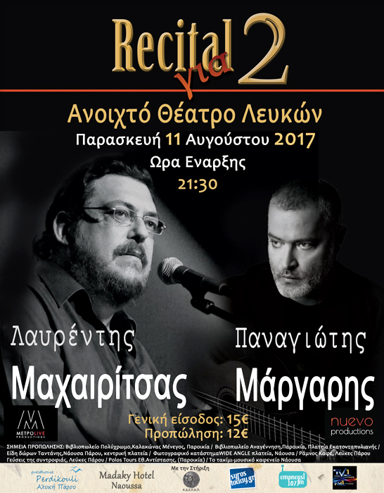 Στο πλαίσιο του πολιτιστικού προγράμματος του Δήμου Σύρου – Ερμούπολης «Σύρος –Πολιτισμός 2017», η Φωτεινή Βελεσιώτου μαζί με την Ανατολή Μαργιόλα τρα...