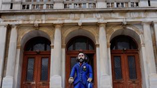 Η καρικατούρα που απεικονίζει τον “πατέρα” του Συριανού Καρναβαλιού, Γεώργιο Σουρή τοποθετήθηκε στην πλατεία Μιαούλη και συγκεκριμένα μπροστά από την ...