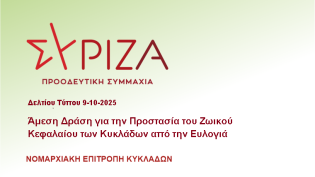 Η Νομαρχιακή Επιτροπή ΣΥΡΙΖΑ – Π.Σ Κυκλάδων μέσω ανακοίνωσής της, εκφράζει την έντονη ανησυχία της και στηρίζει την κραυγή αγωνίας της Κτηνοτροφικής Έ...
