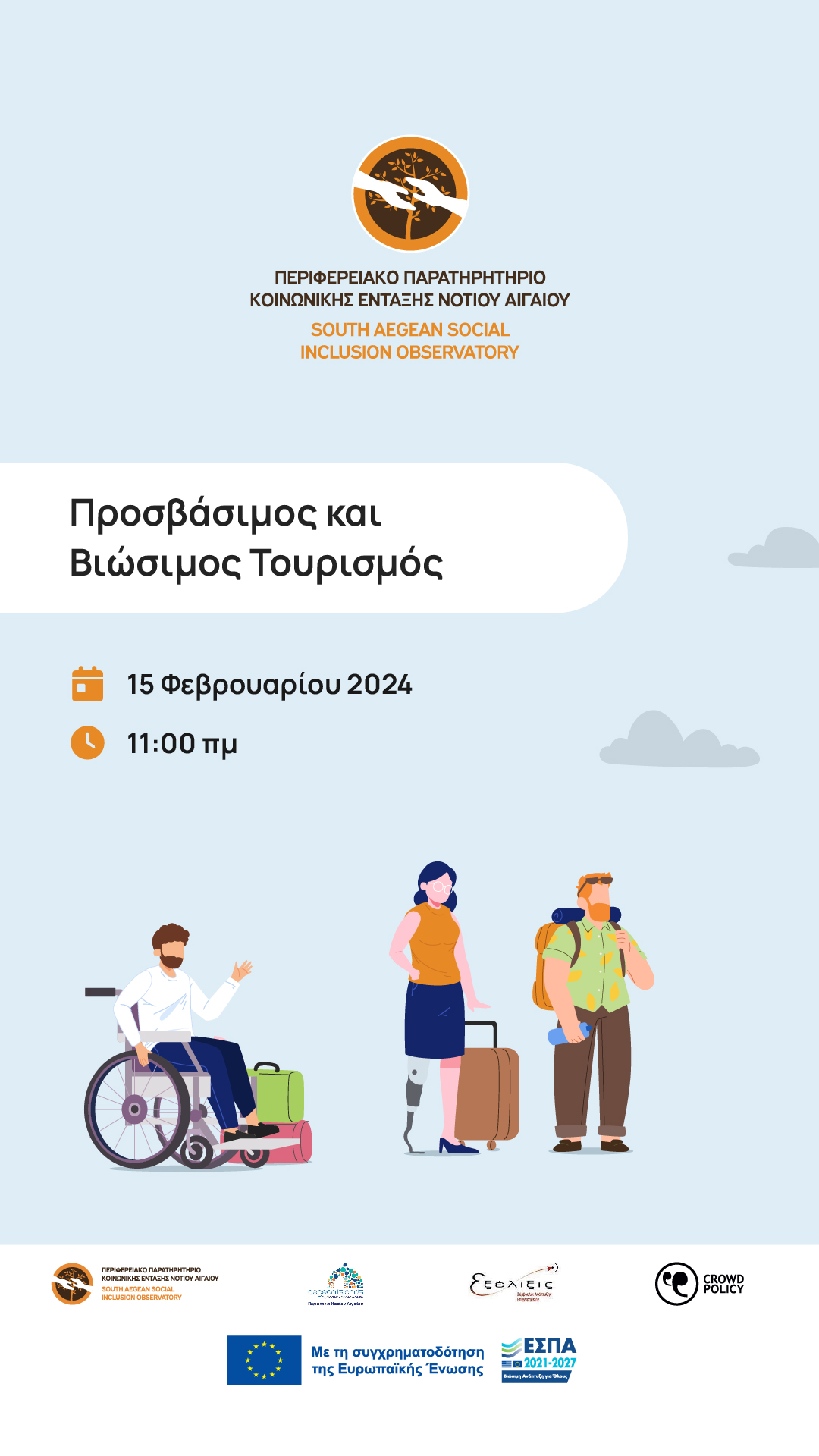 Παρατηρητήριο Κοινωνικής Ένταξης Νοτίου Αιγαίου: Διαδικτυακή συνάντηση για τον βιώσιμο και προσβάσιμο τουρισμό