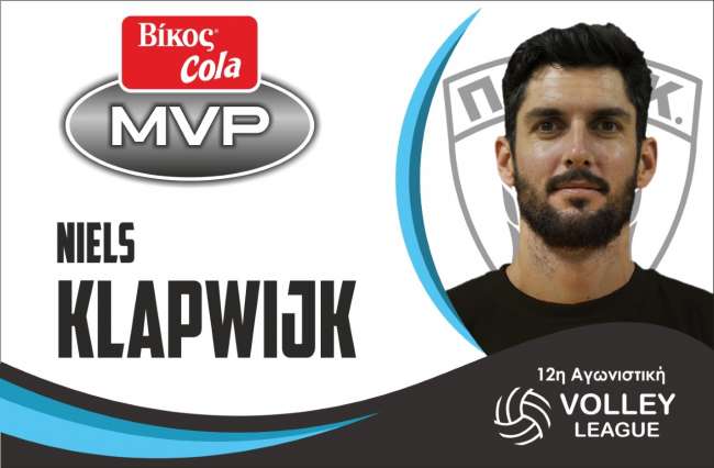 O νεοαποκτηθέντας διαγώνιος του ΠΑΟΚ Νιλς Κλαπβάικ αναδείχτηκε πολυτιμότερος αθλητής MVP Βίκος Cola της 12ης αγωνιστικής του πρωταθλήματος Volley Leag...