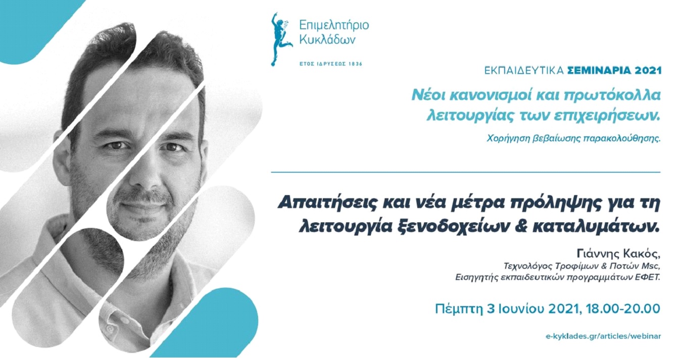 Καθώς οι θέσεις για το σεμινάριο της Τετάρτης 11 Μαΐου για τα Υγειονομικά Πρωτόκολλα για τη λειτουργία καταλυμάτων το 2022 έχουν συμπληρωθεί, το Επιμε...