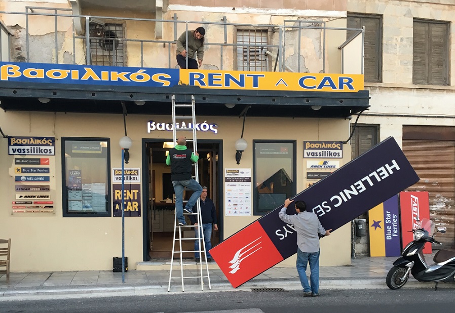 Απομάκρυνση των τεράστιων διαφημιστικών πινακίδων από το ταξιδιωτικό πρακτορείο του Ν. Βασιλικού στο παραλιακό τμήμα της Ερμούπολης