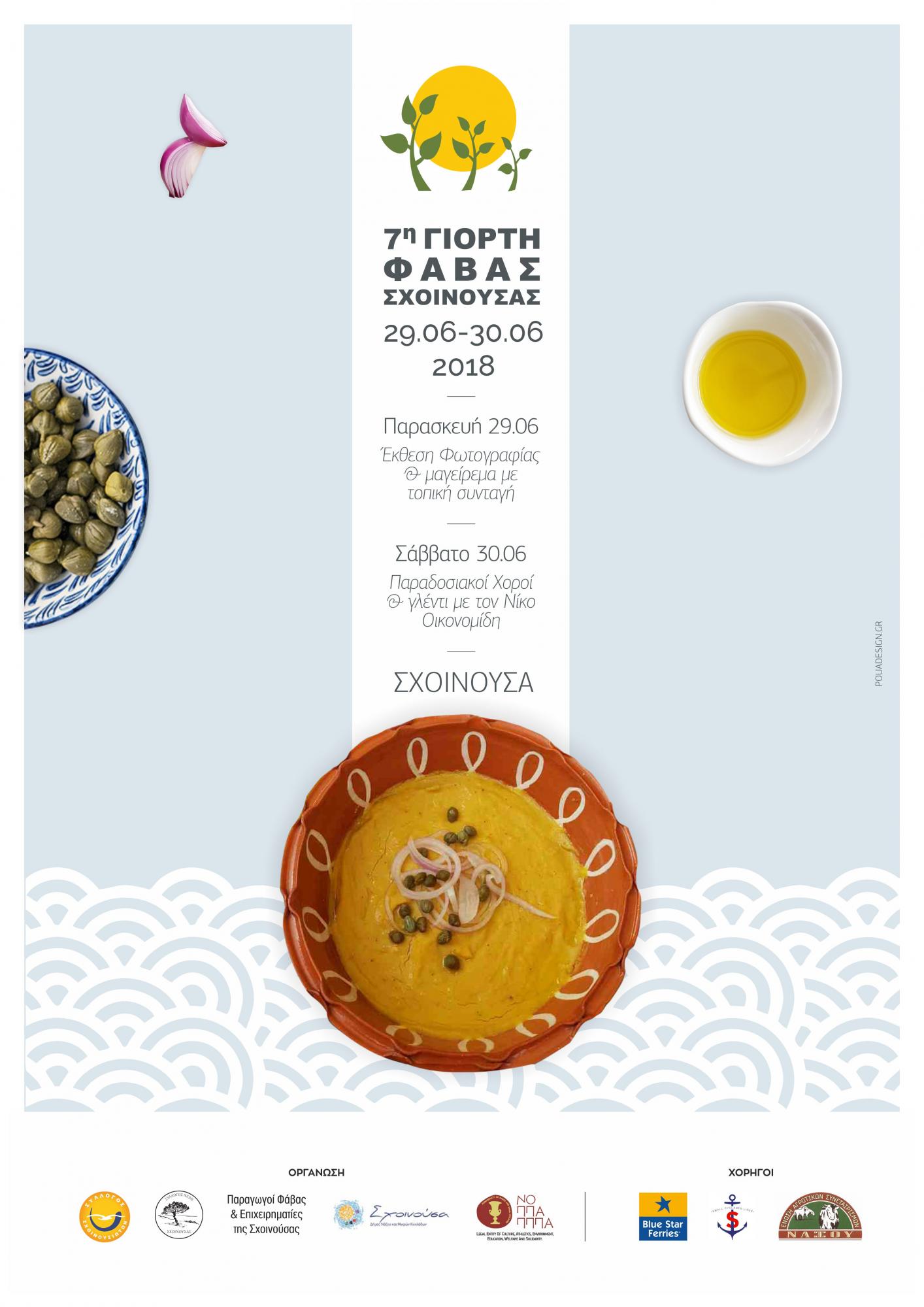 Διήμερη γιορτή φάβας διοργανώνεται στη Σχοινούσα κατά το Παρασκευοσάββατο 29 - 30 Ιουνίου. Δείτε την αφίσα.