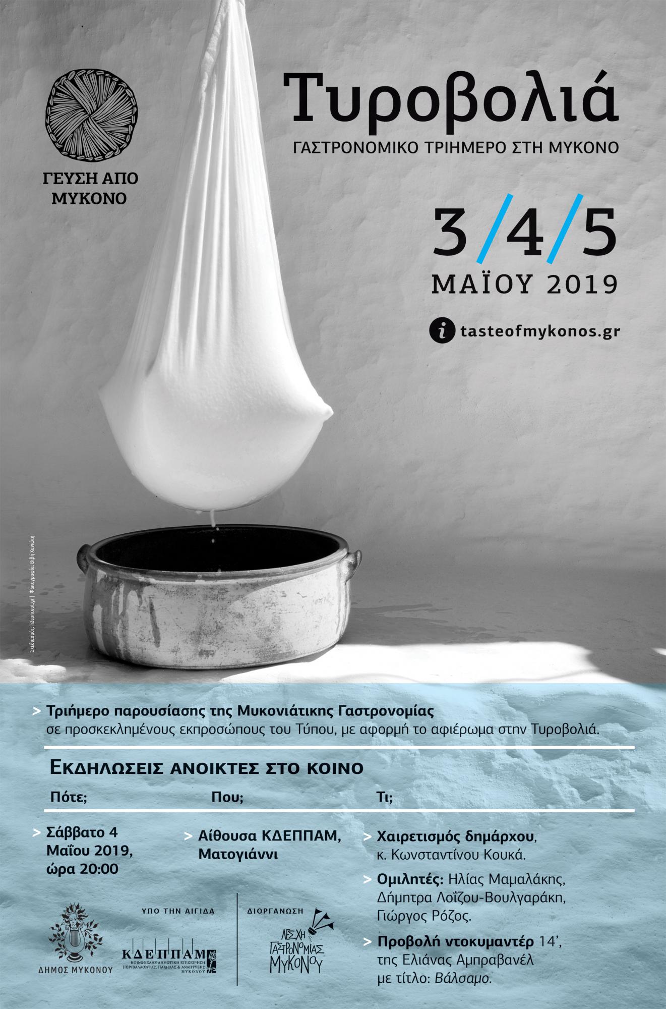 Την Παρασκευή 3.5.19 ξεκινάνε οι εκδηλώσεις που αφορούν την Διοργάνωση TASTE OF MYKONOS (Γεύση από Μύκονο) με αντικείμενο την Μυκονιάτικη Γαστρονομία,...