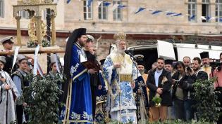Συναισθηματικά φορτισμένη η τελετή του Αγιασμού των υδάτων στο λιμάνι της Ερμούπολης, με τη σκέψη στις εκατοντάδες παιδικές ψυχές που χάθηκαν στο Αιγαίο