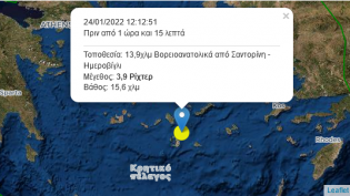 Σεισμική δόνηση, μεγέθους 3,9 της κλίμακας Ρίχτερ, σημειώθηκε το μεσημέρι της Δευτέρας, 24 Ιανουαρίου, στη βορειοανατολική θαλάσσια περιοχή της Θήρας....