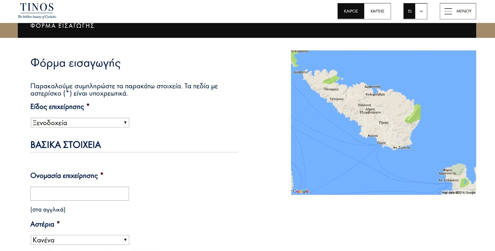 Ο Δήμος Τήνου καλεί τους επαγγελματίες του νησιού που επιθυμούν την προβολή τους μέσα από το τουριστικό portal του Δήμου www.tinos.gr, να συμπληρώσου...