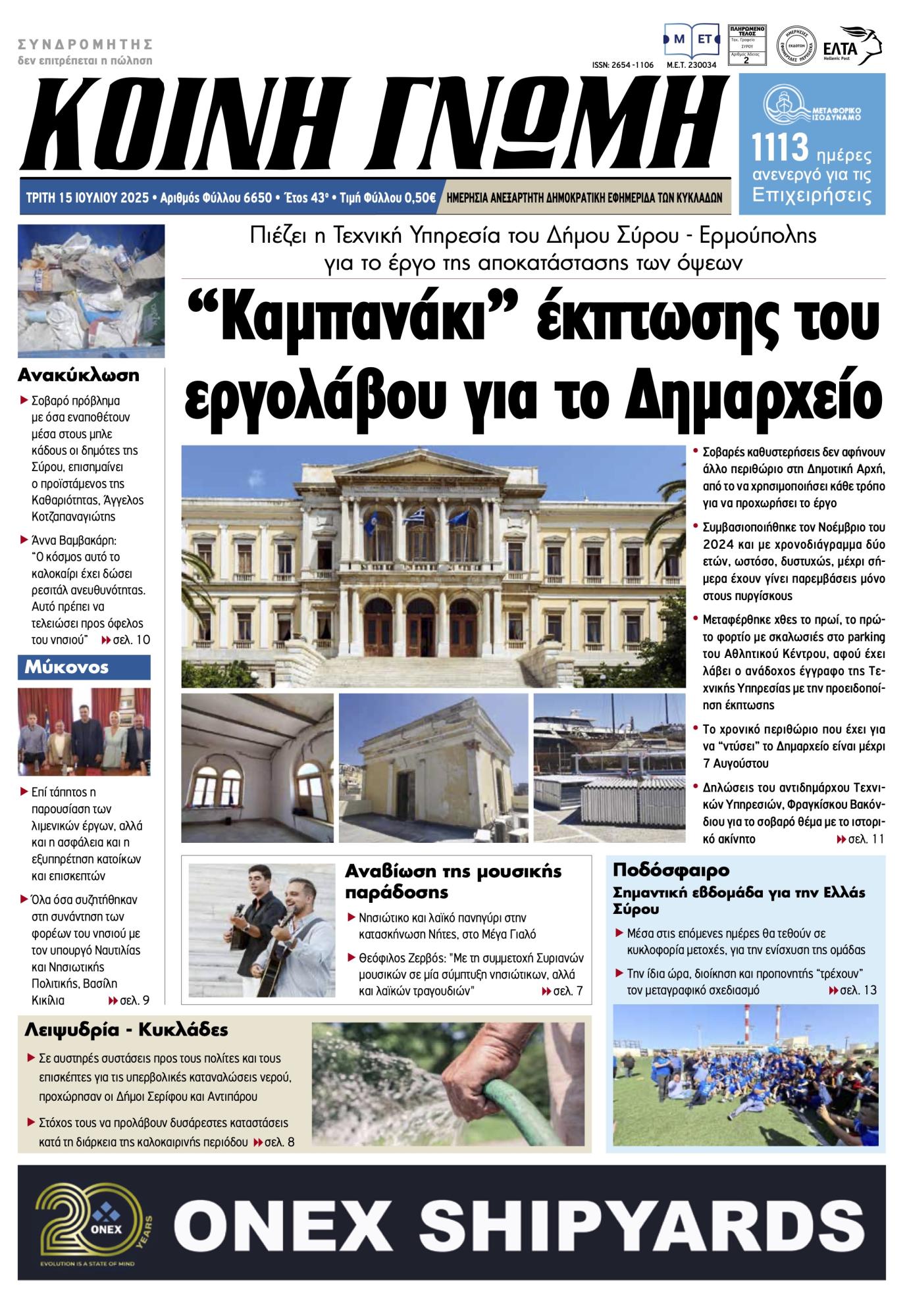ΚΟΙΝΗ ΓΝΩΜΗ ΚΟΙΝΗ ΓΝΩΜΗ Ημερησια Εφημεριδα των Κυκλαδων