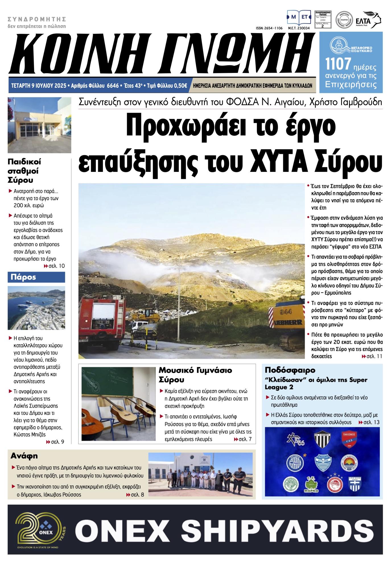 ΚΟΙΝΗ ΓΝΩΜΗ ΚΟΙΝΗ ΓΝΩΜΗ Ημερησια Εφημεριδα των Κυκλαδων