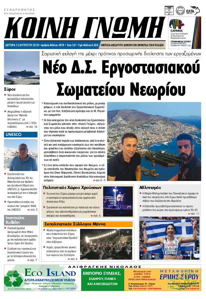 ΚΟΙΝΗ ΓΝΩΜΗ ΚΟΙΝΗ ΓΝΩΜΗ Ημερησια Εφημεριδα των Κυκλαδων