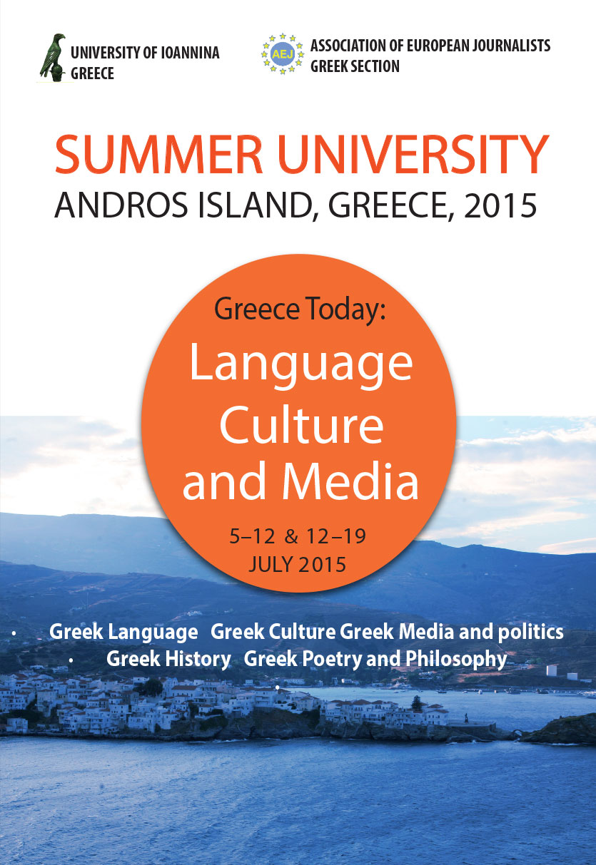 Το Πανεπιστήμιο Ιωαννίνων και η Ένωση Ευρωπαίων Δημοσιογράφων διοργανώνουν στην Άνδρο Θερινό Πανεπιστήμιο με τίτλο “Η Ελλάδα σήμερα: Γλώσσα, Πολιτισμό...