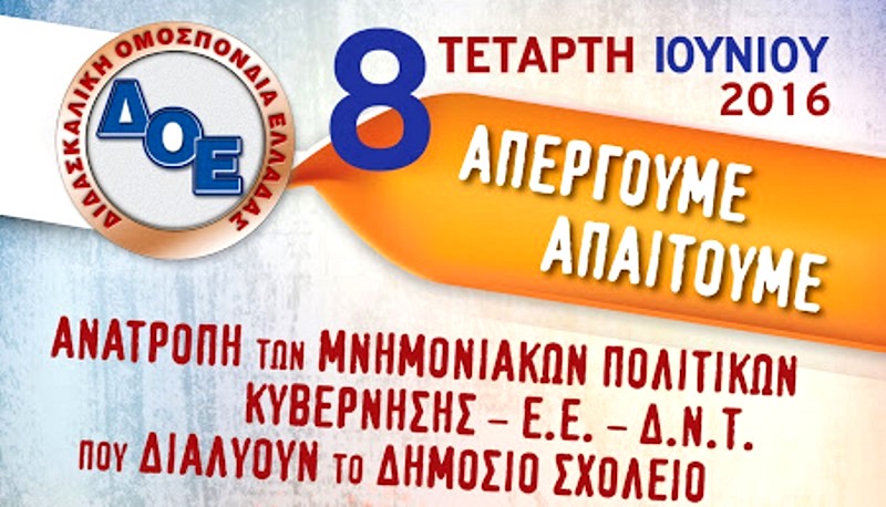 Συμμετοχή του Συλλόγου Πρωτοβάθμιας Εκπαίδευσης στην απεργία της 8ης Ιουνίου