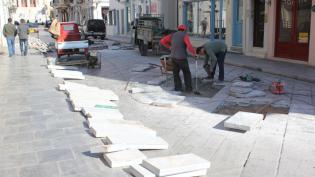 Αποκατάσταση μαρμάρινων πλακών στην Ερμούπολη