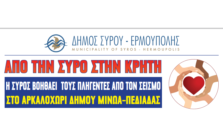 Ο Δήμος Σύρου- Ερμούπολης μέσω της Κοινωνικής Υπηρεσίας, με τη συμμετοχή του τοπικού Συλλόγου Κρητών και κατόπιν συνεννόησης με τον αρμόδιο Δήμο, ενημ...