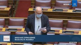 Επίκαιρη ερώτηση του Βουλευτή Κυκλάδων, Νίκου Συρμαλένιου