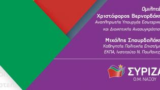 Η ΟΜ Νάξου του ΣΥΡΙΖΑ διοργανώνει εκδήλωση με θέμα: "Δημόσια διοίκηση, εκδημοκρατισμός και αποτελεσματικότητα" με ομιλητές τους Χριστόφορο Βερναρδάκη ...