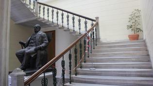 Επικίνδυνη λόγω των έντονων καιρικών φαινομένων κρίθηκε η περιοχή της μαρμάρινης επιβλητικής εσωτερικής σκάλας του δημαρχείου Σύρου- Ερμούπολης, με απ...